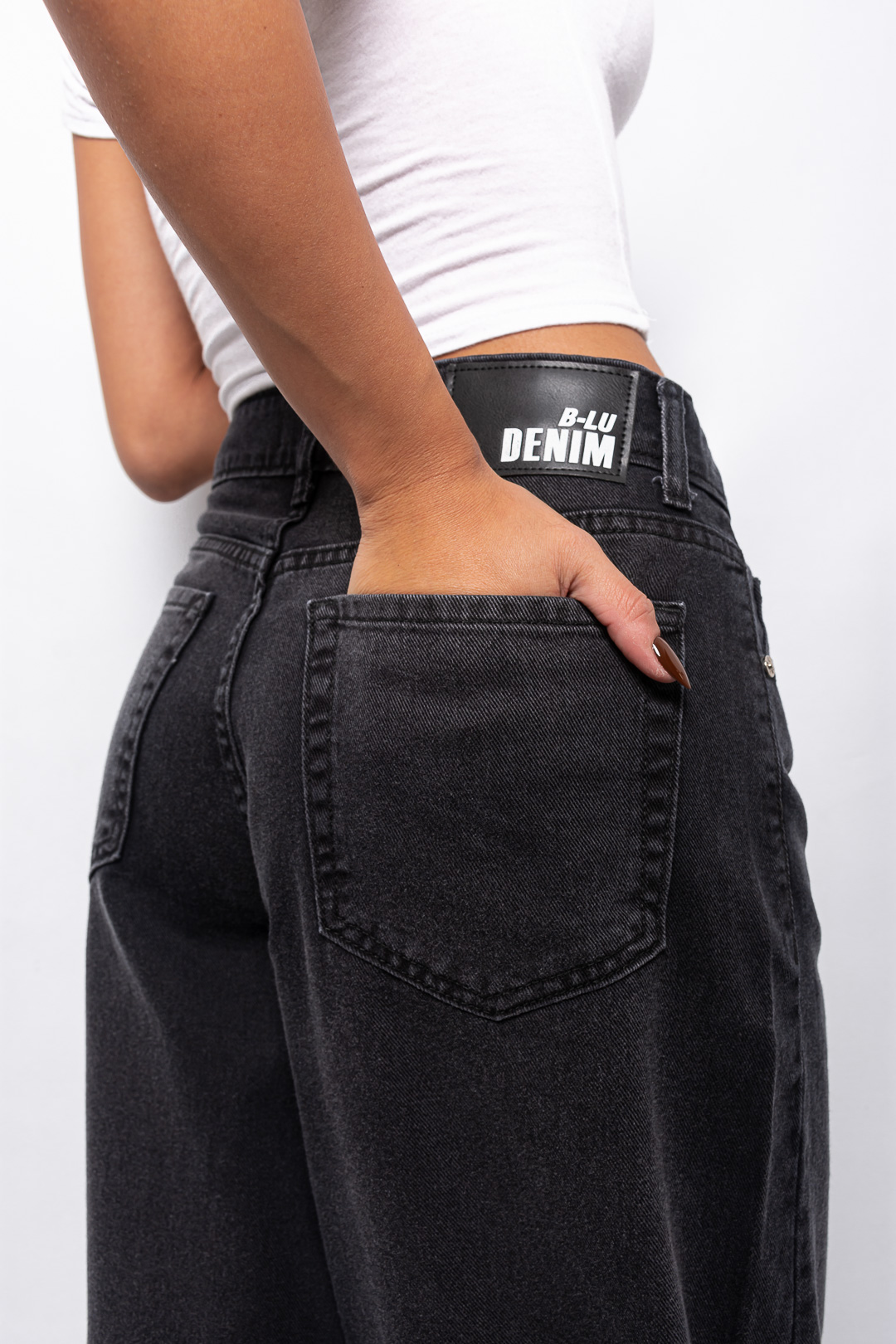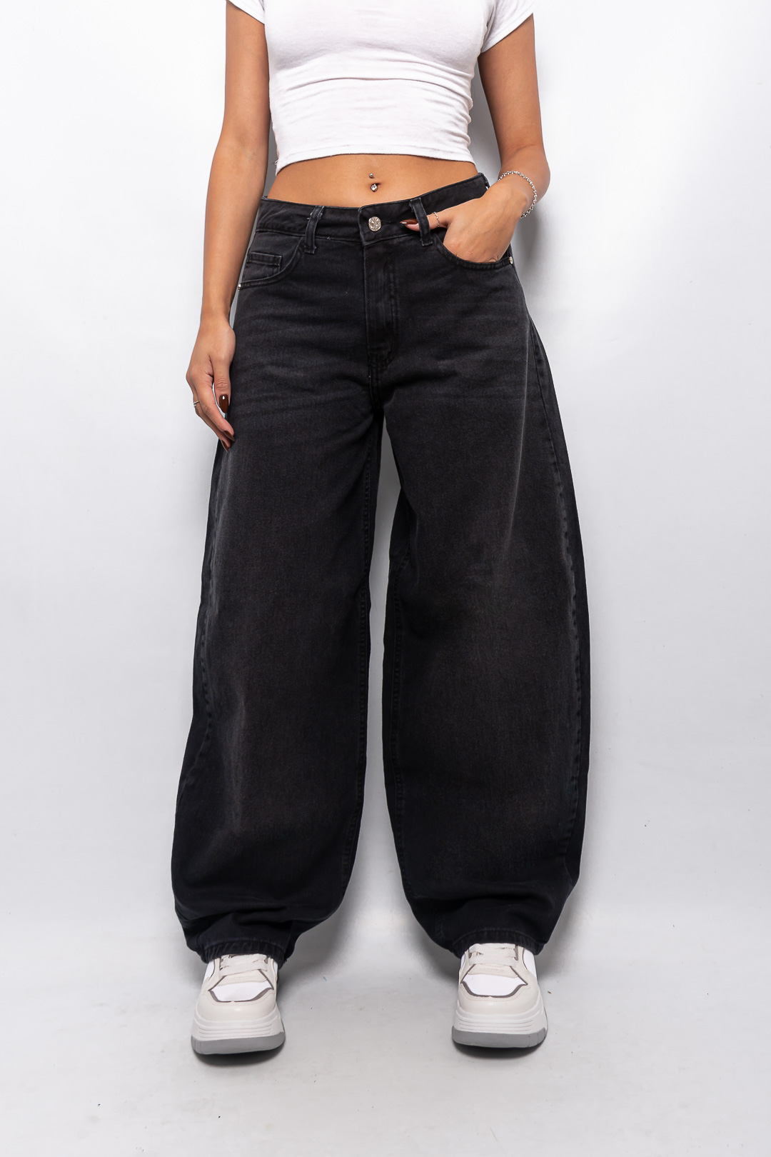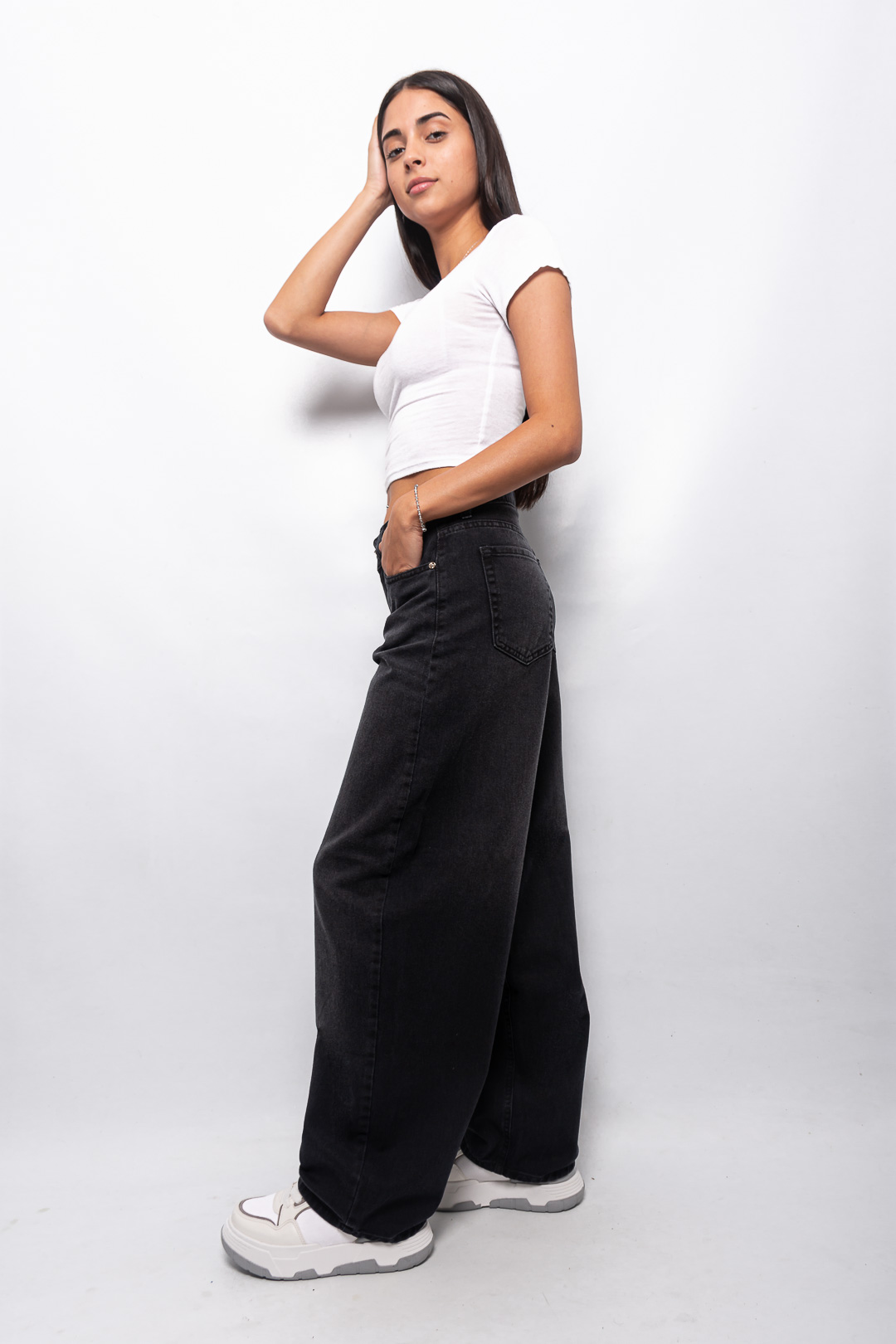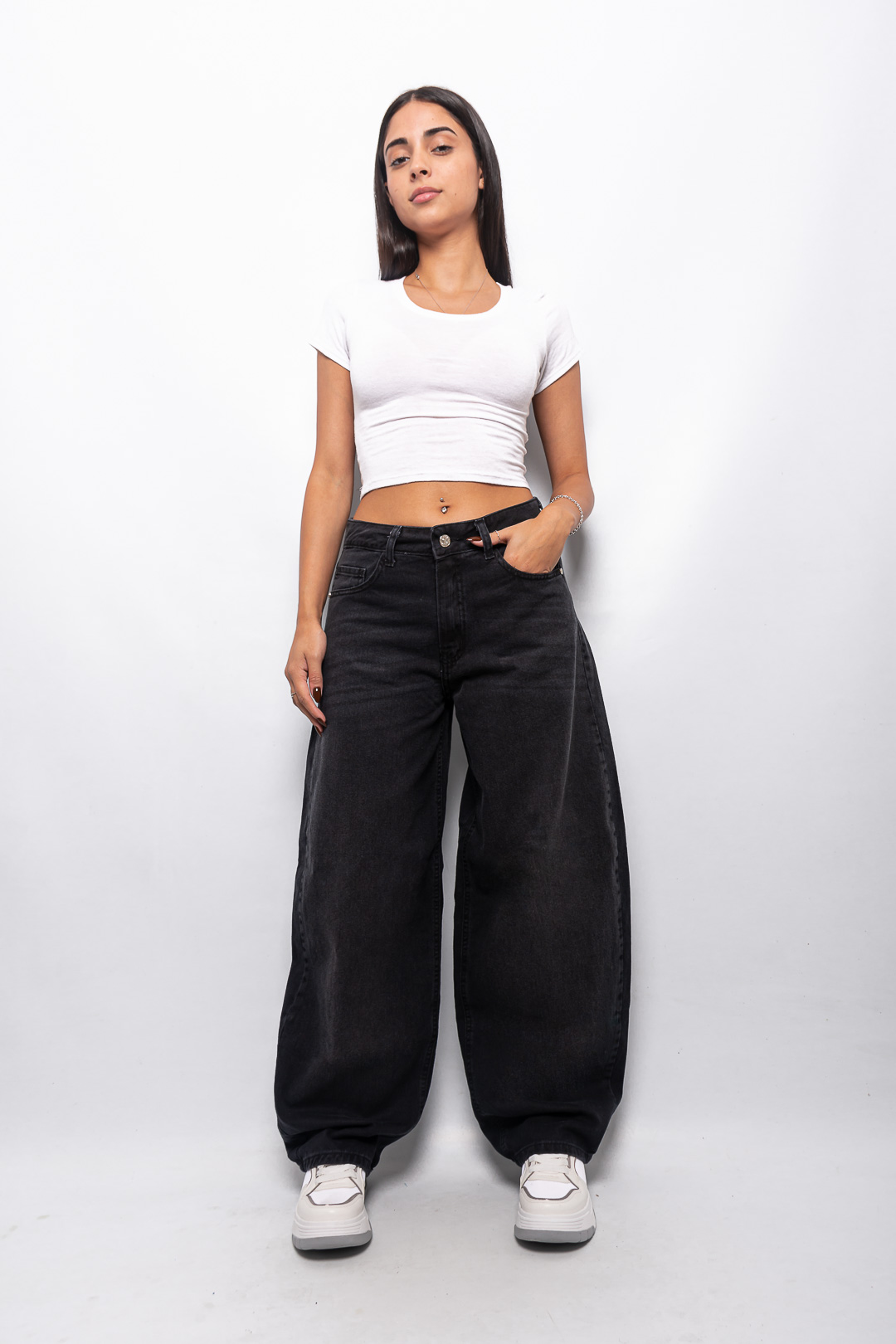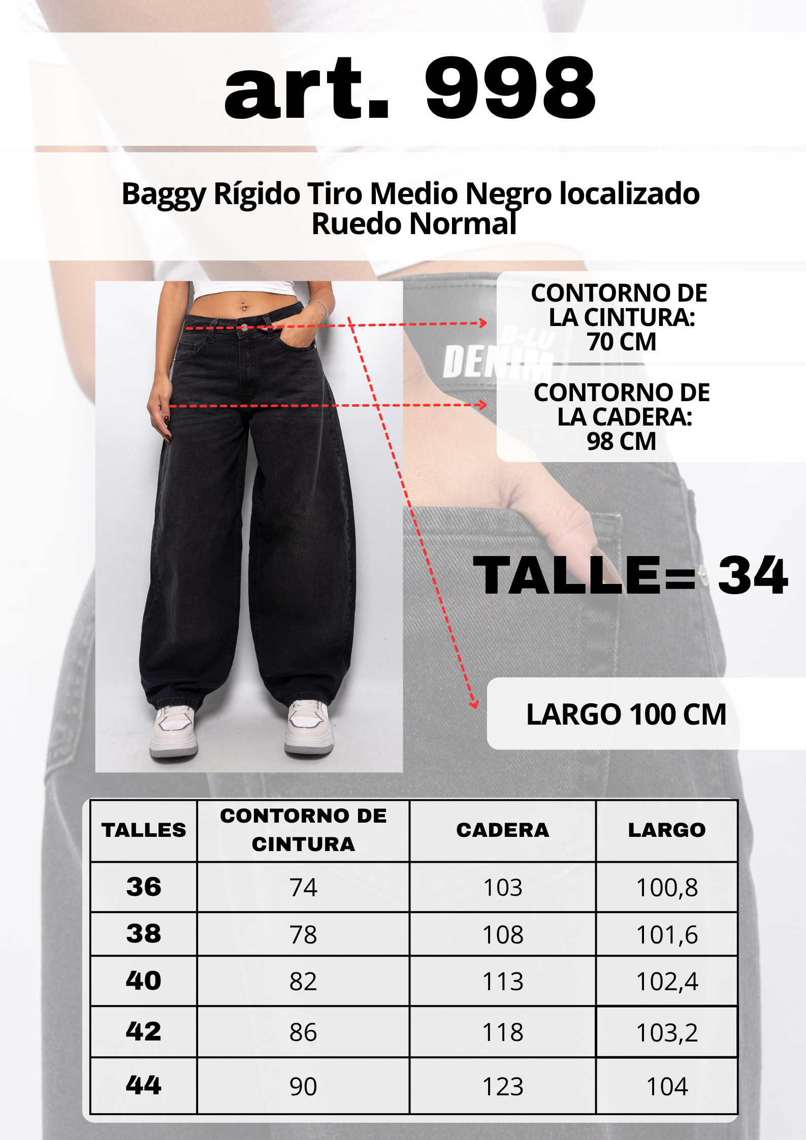 Baggy Rígido Tiro Medio Negro localizado Ruedo Normal