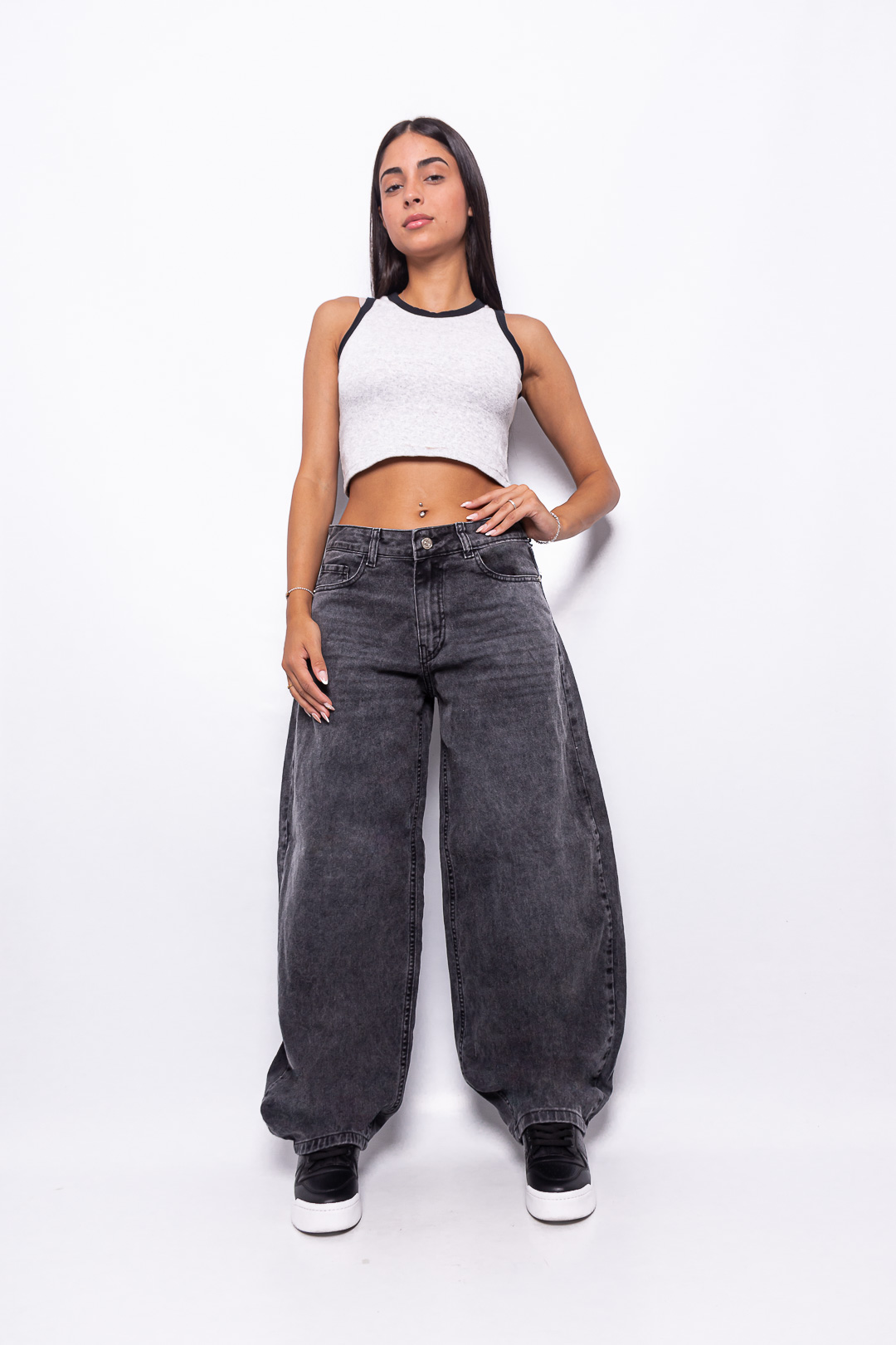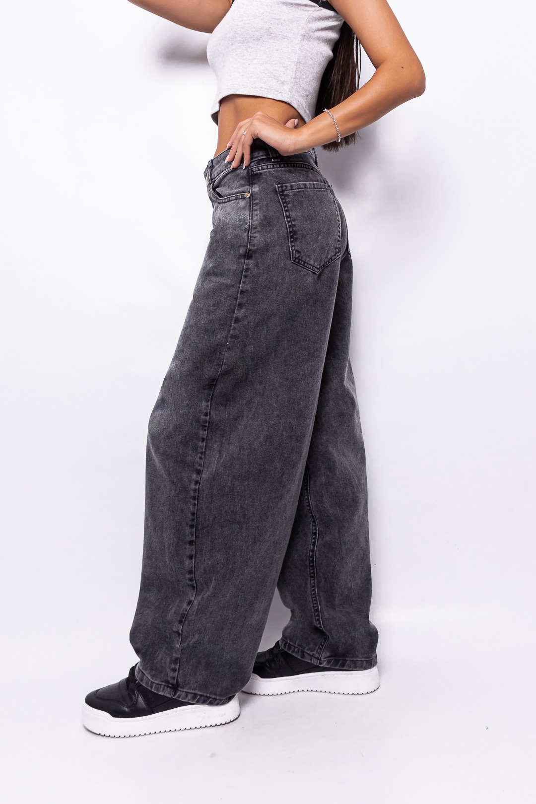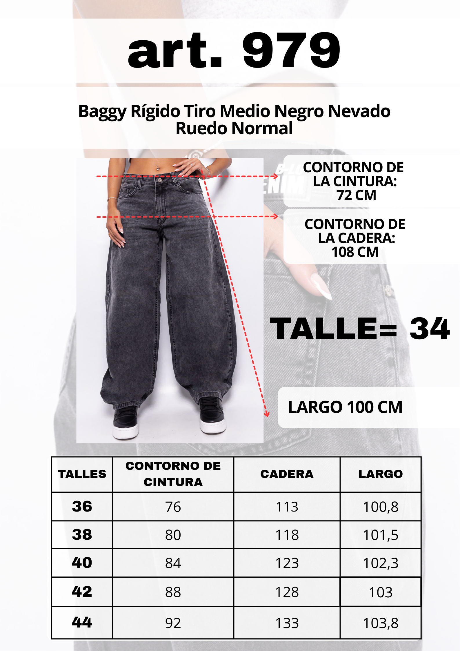 Baggy Rígido Tiro Medio Negro Nevado Ruedo Normal