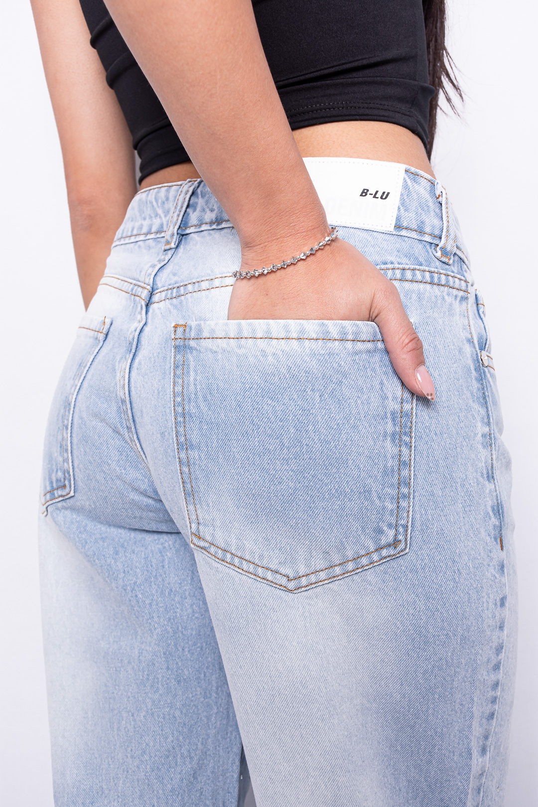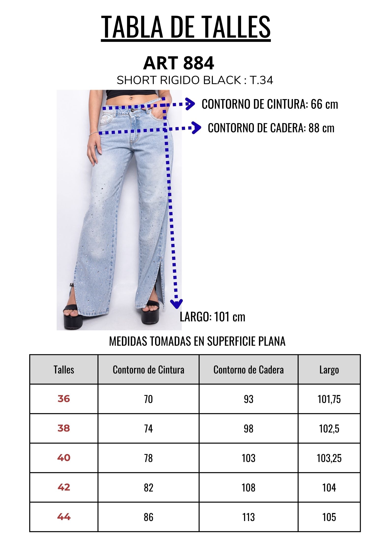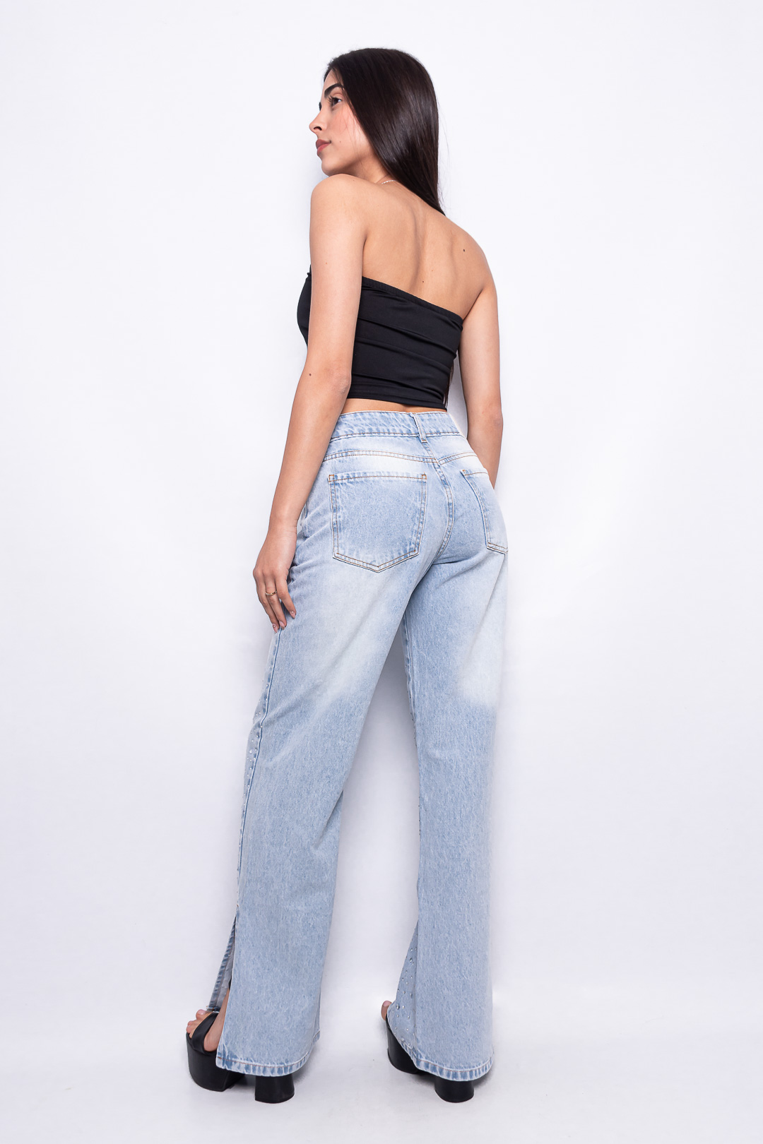 Jean recto CELESTE nevado HOT FIX lateral con tajo ruedo normal