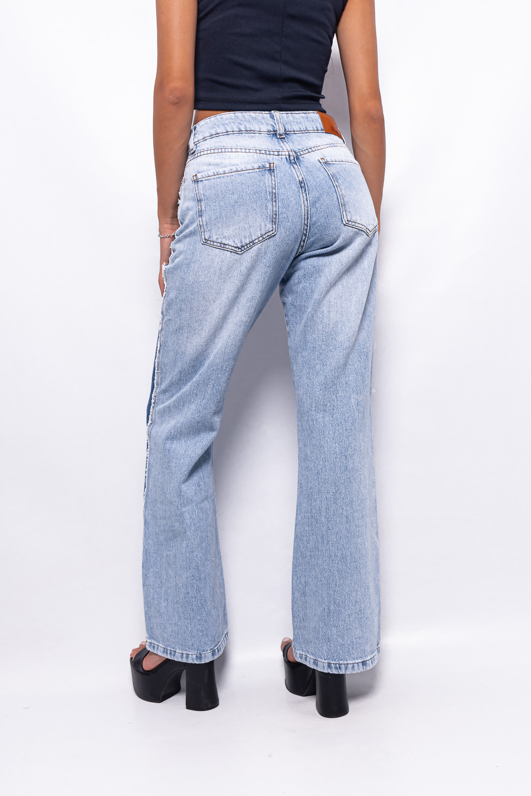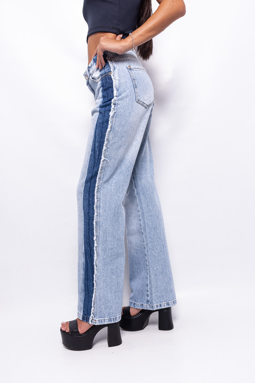 Recto Tiro Medio Celeste Nevado con Franja Azul Ruedo Normal