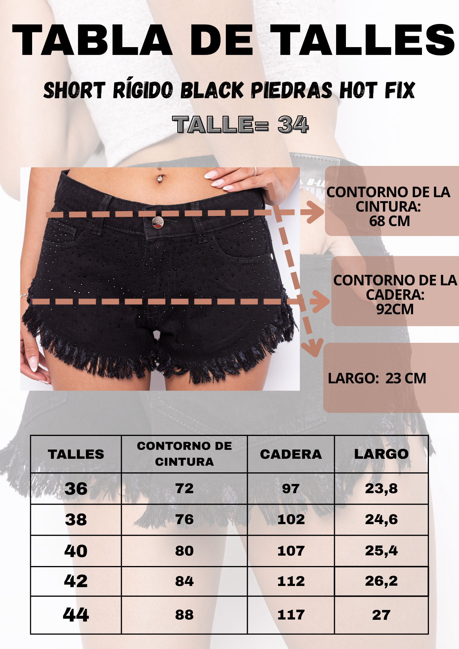 Short rígido Tiro Bajo BLACK PIEDRAS Hot fix ruedo desflecado