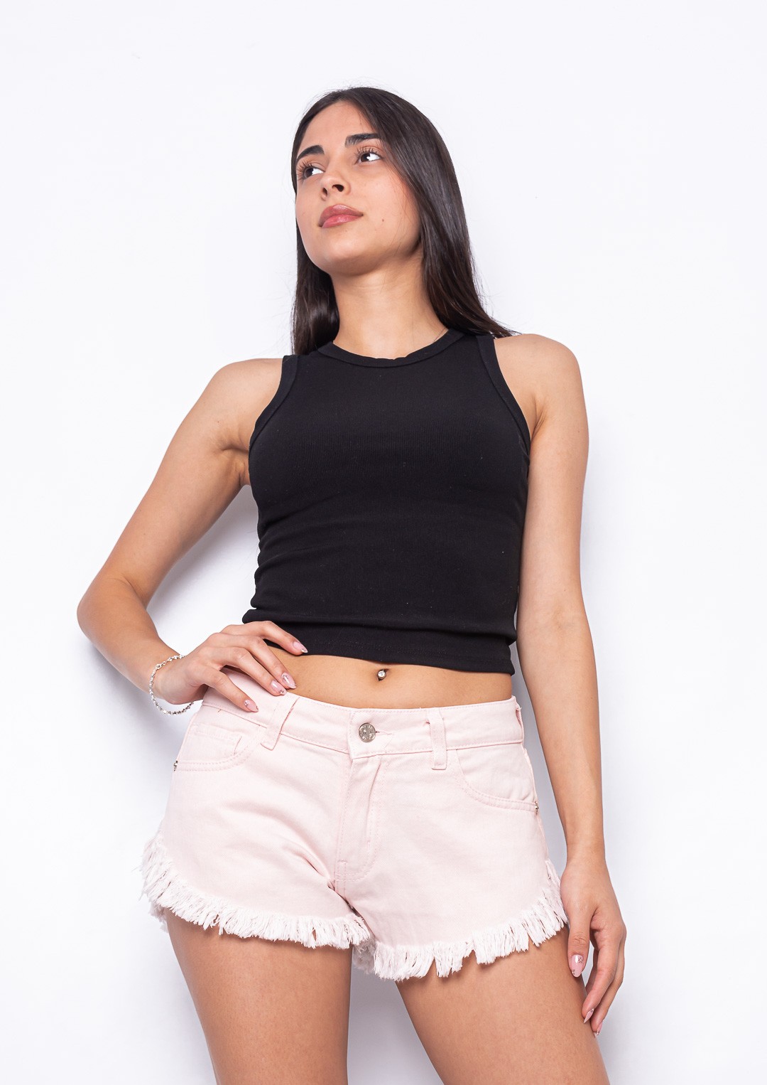 Short rígido rosa ruedo desflecado