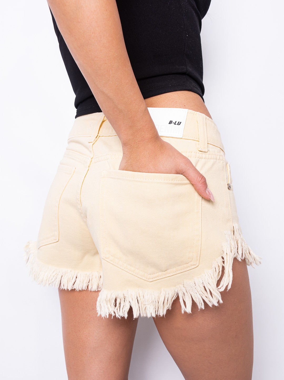 Short rigido yellow ruedo desflecado