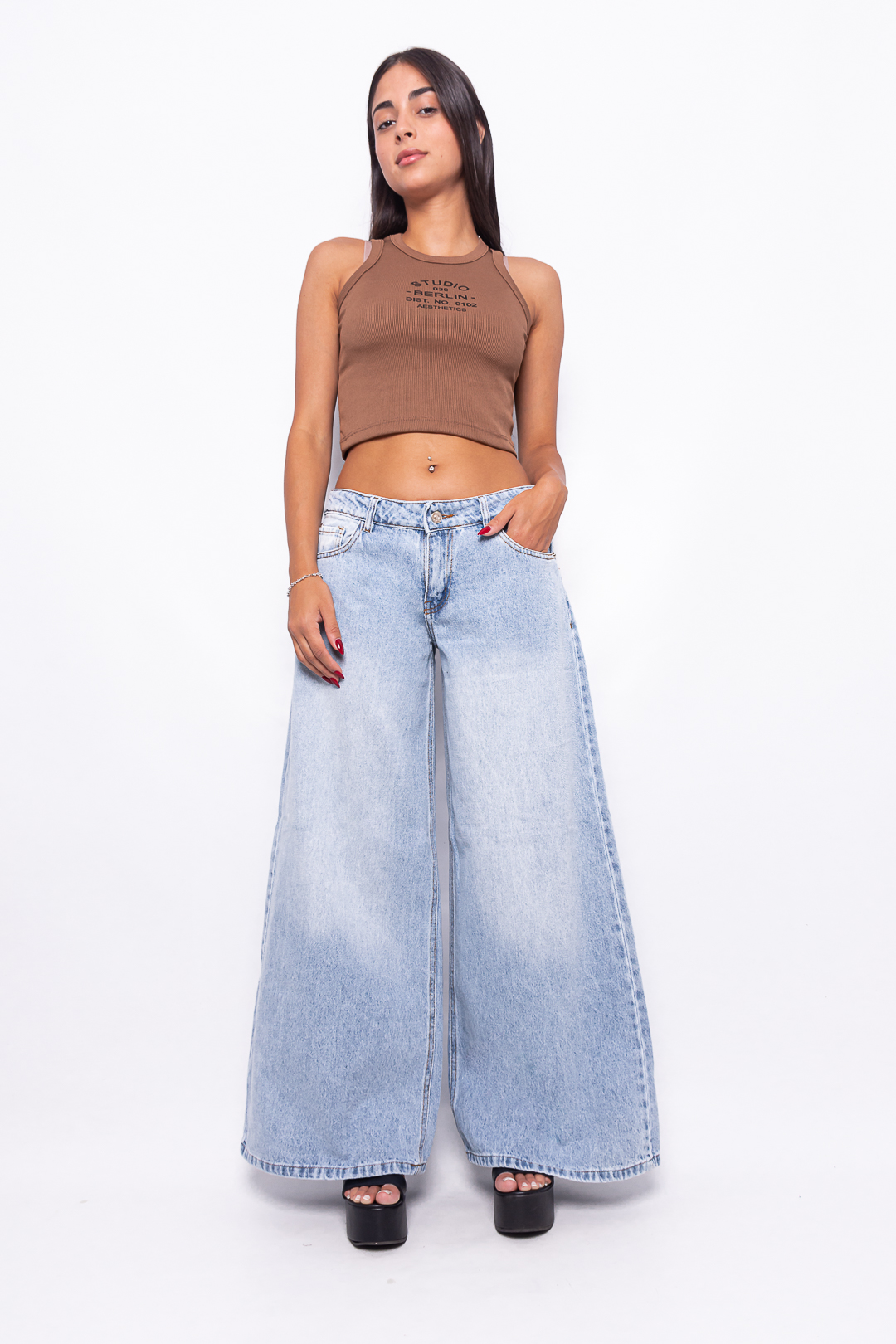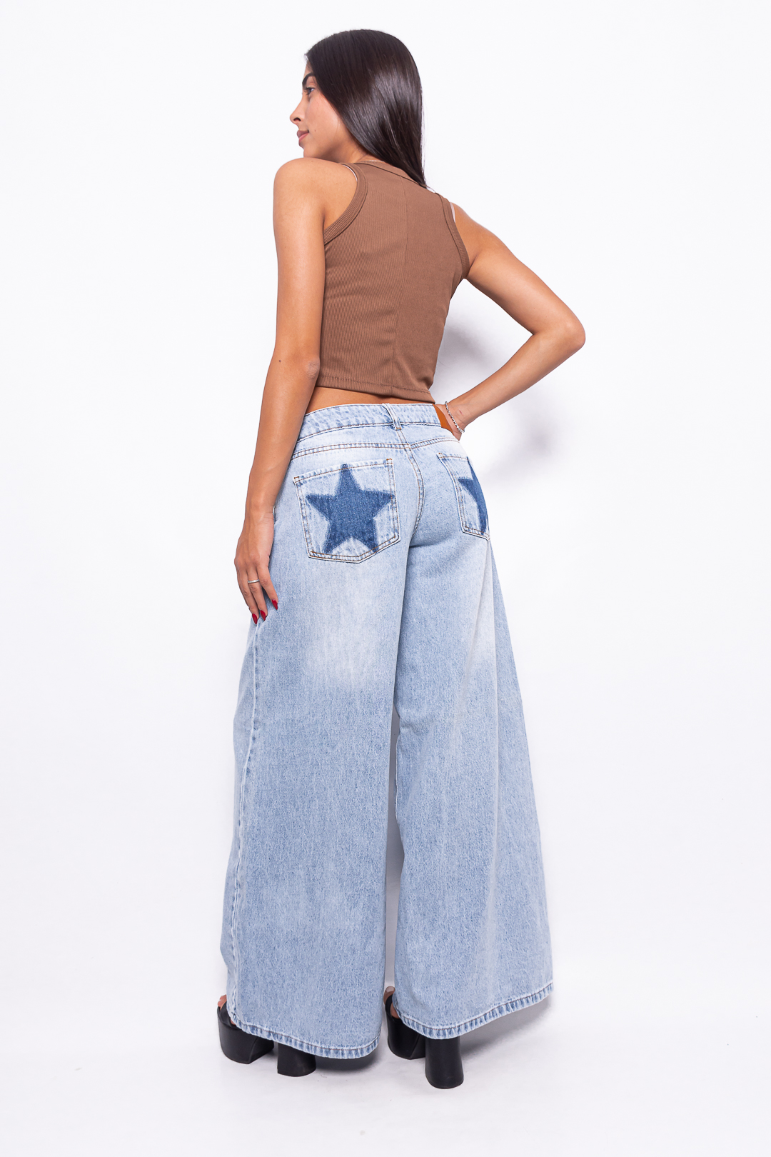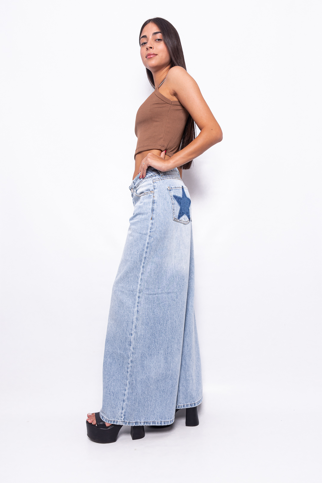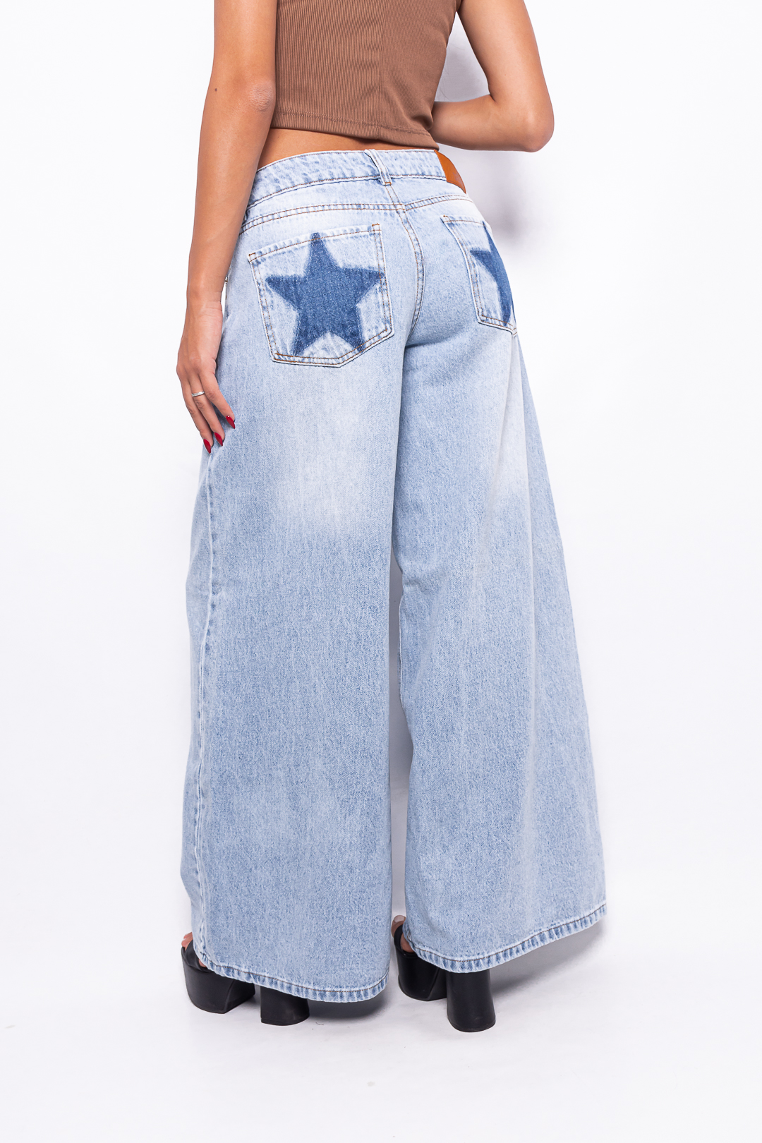 Super Wide Leg Tiro Medio Celeste con bolsillo estrella