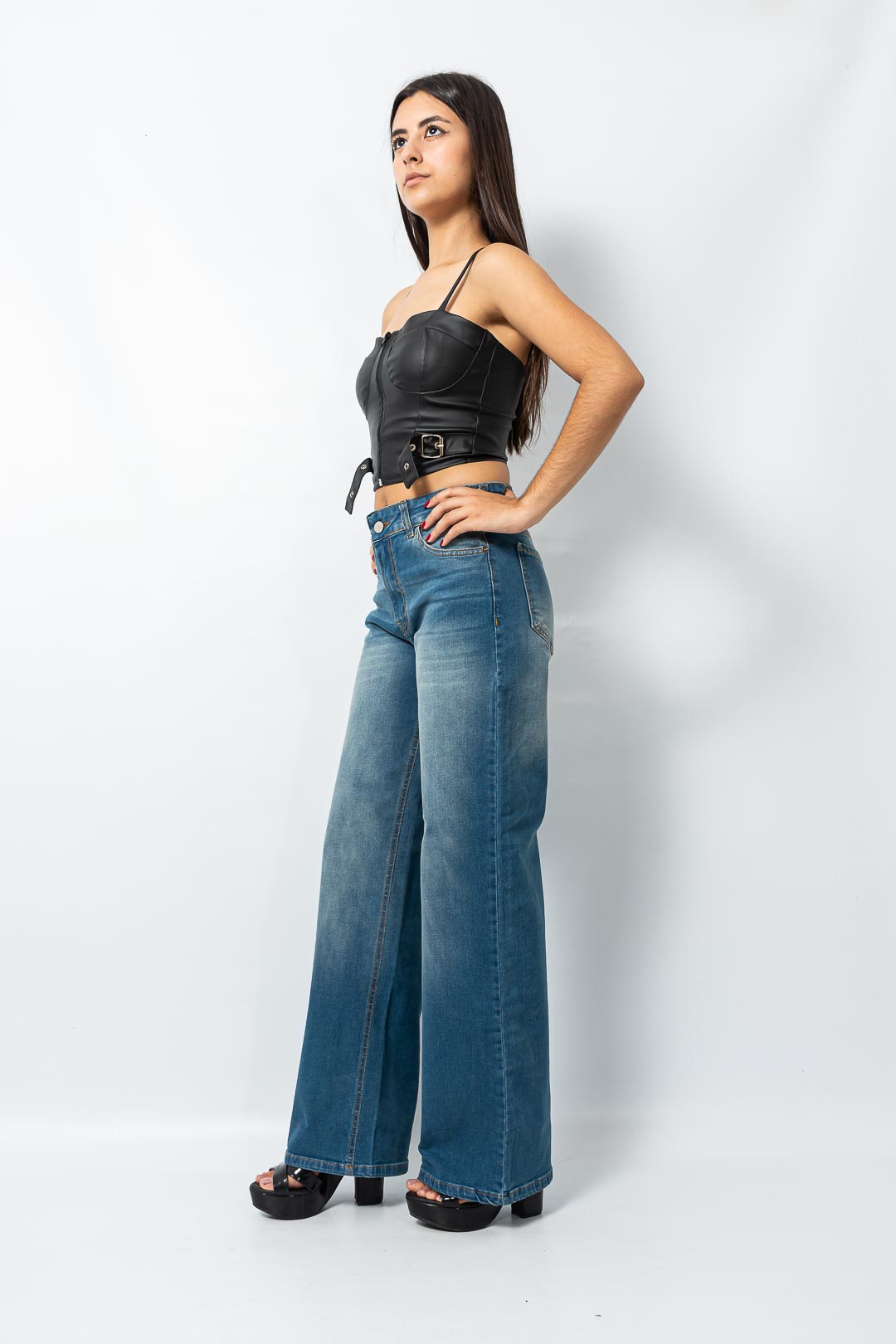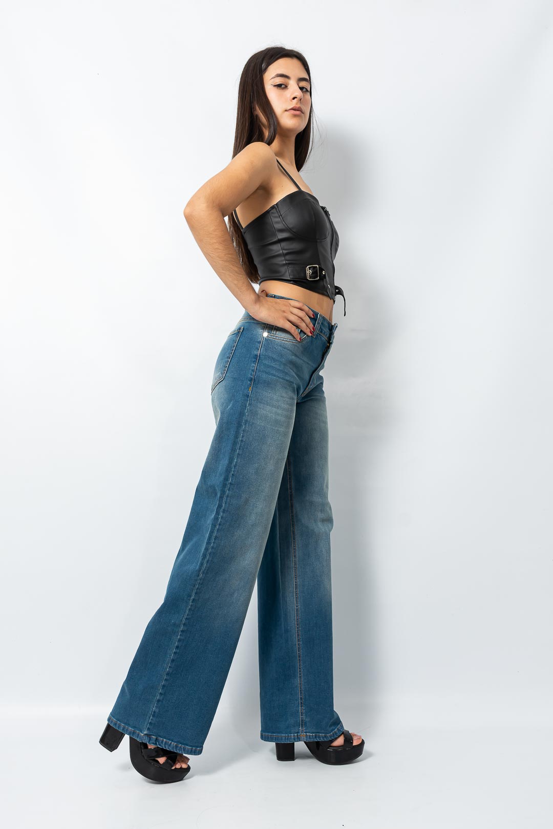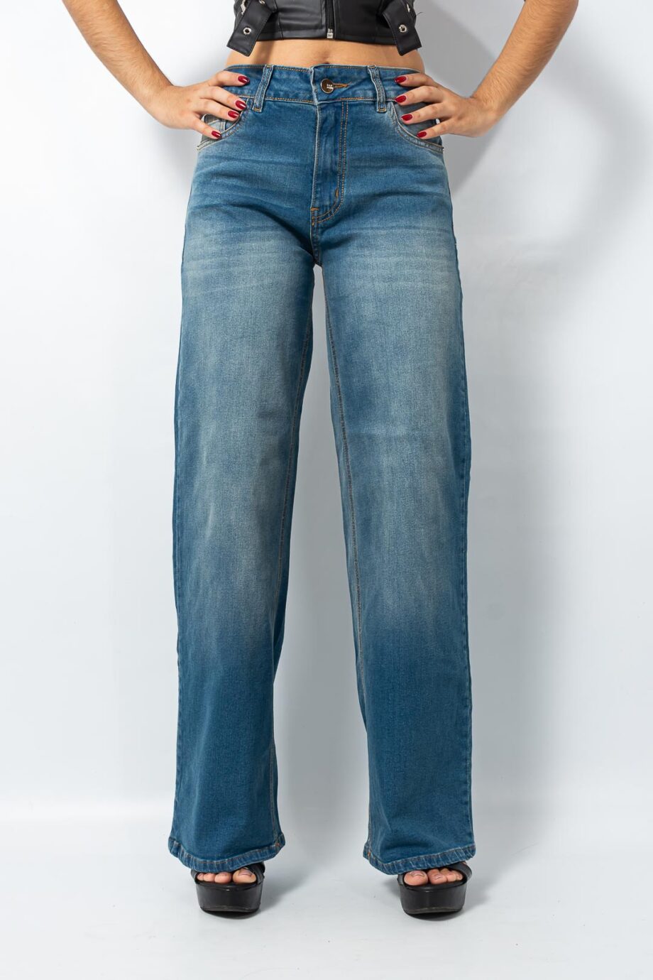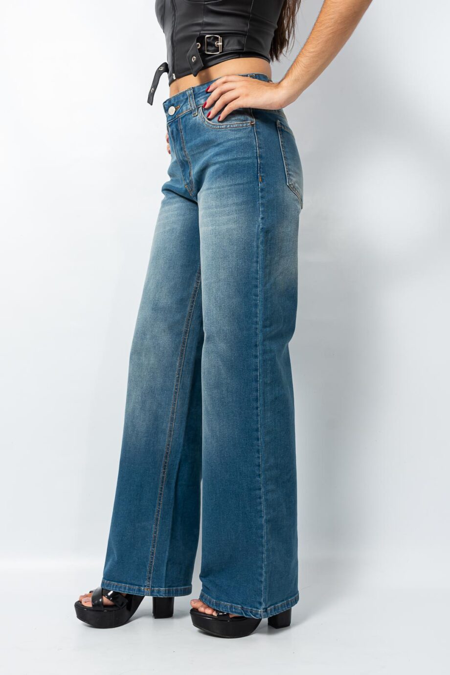 Wide leg Recto elastizado matizado localizado