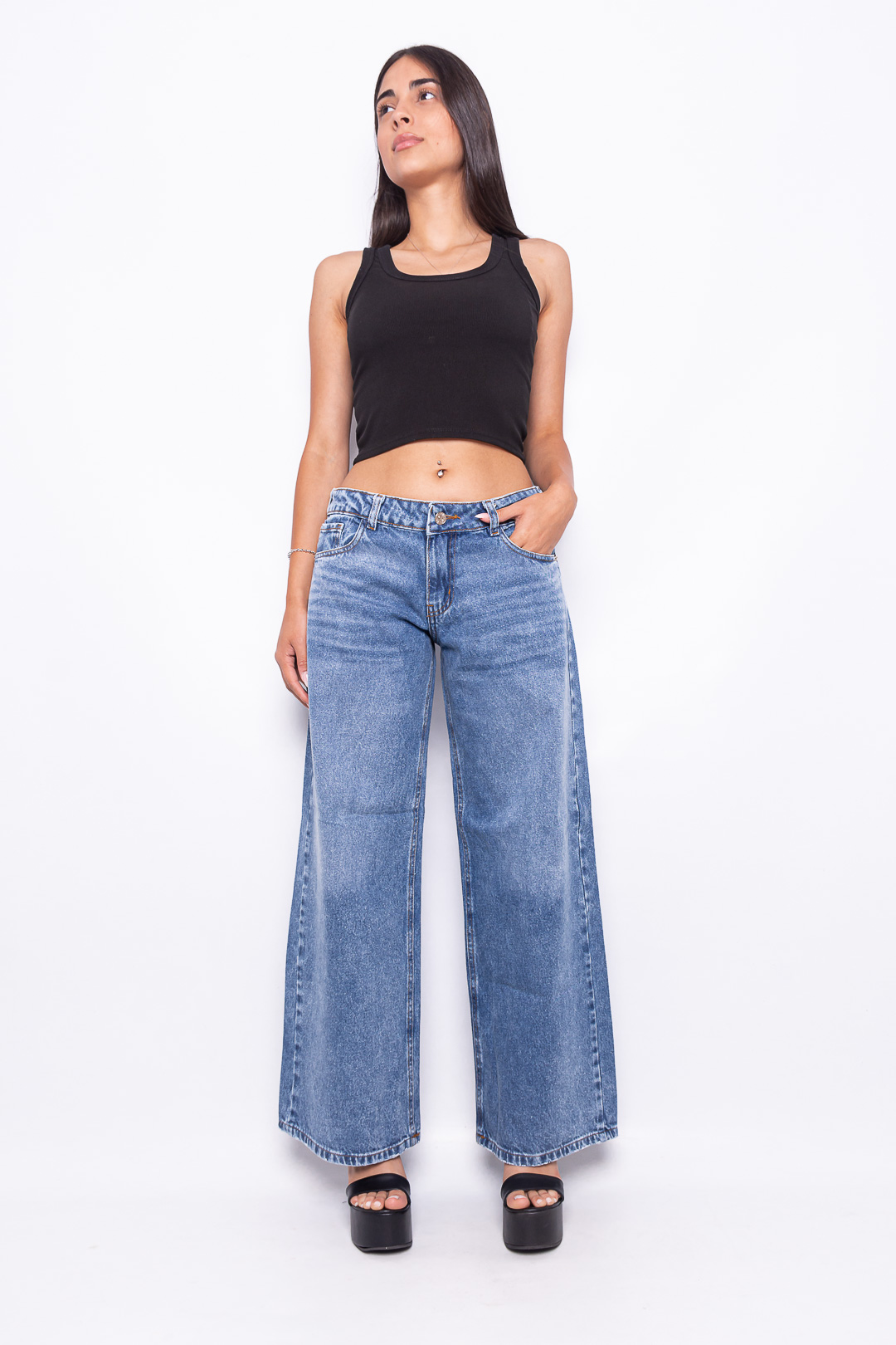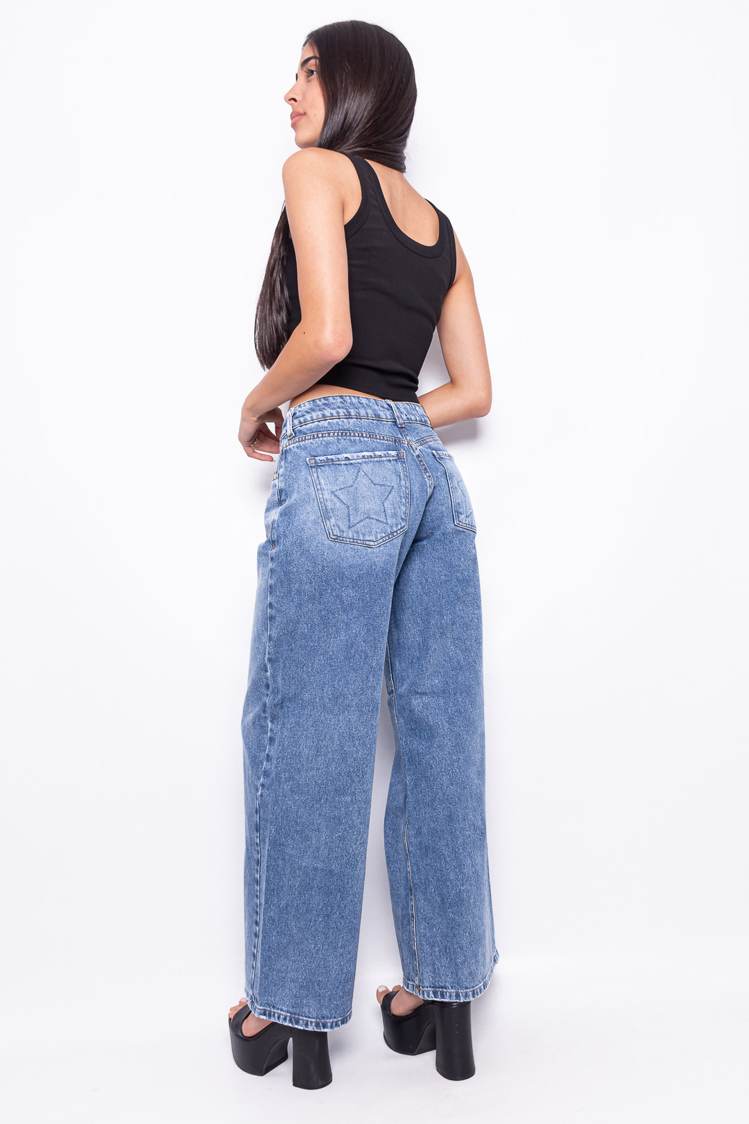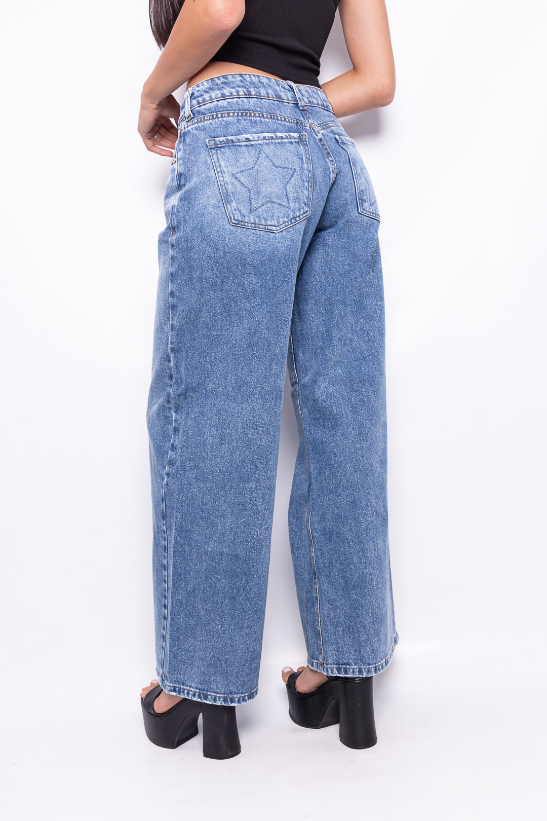 WIDE LEG RÍGIDO AZUL NEVADO CON ESTRELLA EN EL BOLSILLO RUEDO NORMAL